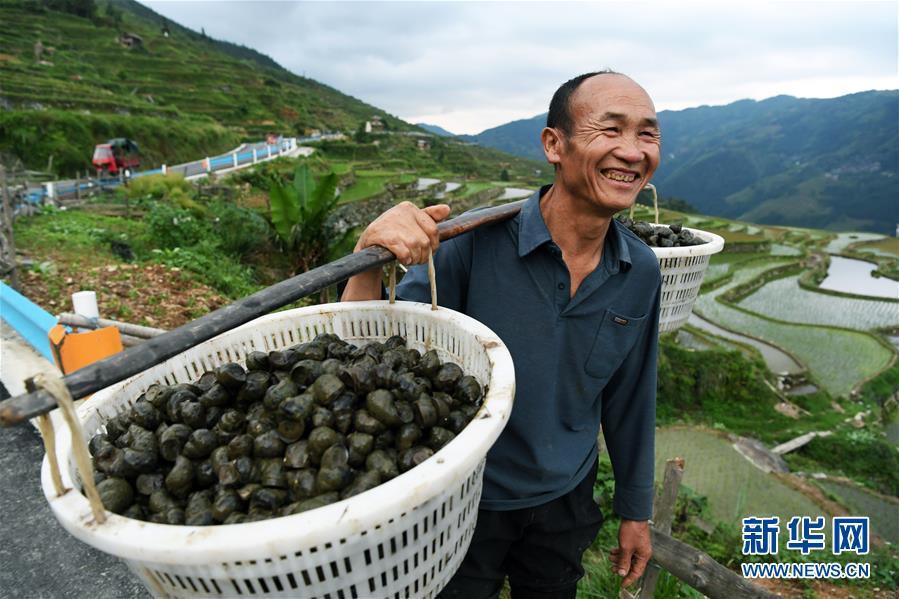 在田螺养殖过程中,采取“公司+合作社+农户”的模式,政府统一向龙头公司采购种螺交给合作社,合作社根据贫困户水田规模和意愿发放种螺,同时公司技术人员入村开展养殖技术培训,田螺收获时再由合作社对接种螺公司统一上门按保底价回收,解除了贫困户养殖和销售的后顾之忧,进一步拓宽山区群众脱贫增收渠道。新华社记者杨文斌摄