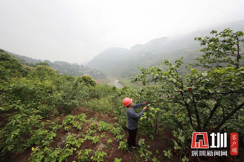 2020年5月27日,在贵州省毕节市纳雍县化作乡双岩头村,村民对樱桃进行田间管理。