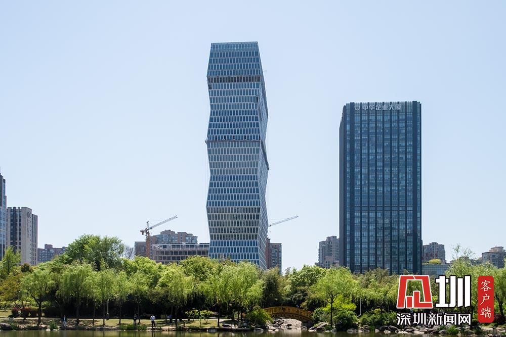 2018年4月10日,上海,长宁区古北商务区一新建超高层建筑造型颇为独特,起伏收分层叠向上的体量和节节高的竹子颇为神似。从各个角度看,大楼的外边都呈折线,有附近居民戏称这幢大楼为“扭腰大楼”。