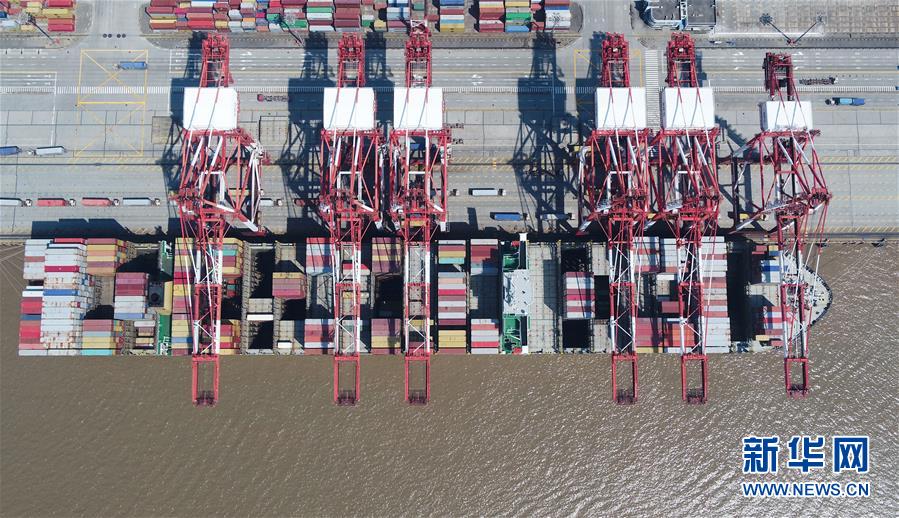 这是3月18日拍摄的上海洋山港集装箱码头(无人机照片)。新华社记者丁汀摄