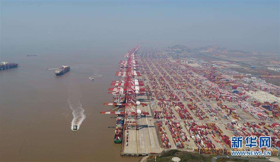 这是3月18日拍摄的上海洋山港集装箱码头(无人机照片)。新华社记者丁汀摄