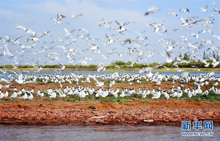 5月27日在陕西省神木市红碱淖拍摄的遗鸥。陕西省神木市红碱淖是中国最大的沙漠淡水湖,近年来随着周边生态环境改善,红碱淖水位逐年提升,水域面积不断扩大,每年四至八月,都会吸引大批遗鸥来此繁衍栖息,已成为遗鸥繁殖的重要基地。新华社记者刘潇摄