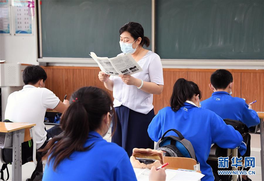 5月28日,北京市第十八中学的初三年级学生在上课。北京市第十八中学共有初三年级学生340余名,学校在做好初三年级学生中考文化课备考的同时,加强学生心理及身体素质的锻炼,以最好的精神状态备战中考。据悉,2020年北京中考报名人数为7.5万人,比去年增加25%。新华社记者任超摄