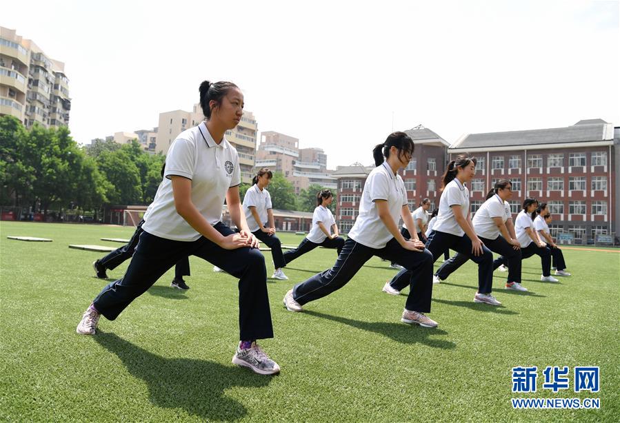 5月28日,北京市第十八中学初三年级的学生在体育课上做准备活动。北京市第十八中学共有初三年级学生340余名,学校在做好初三年级学生中考文化课备考的同时,加强学生心理及身体素质的锻炼,以最好的精神状态备战中考。据悉,2020年北京中考报名人数为7.5万人,比去年增加25%。新华社记者任超摄