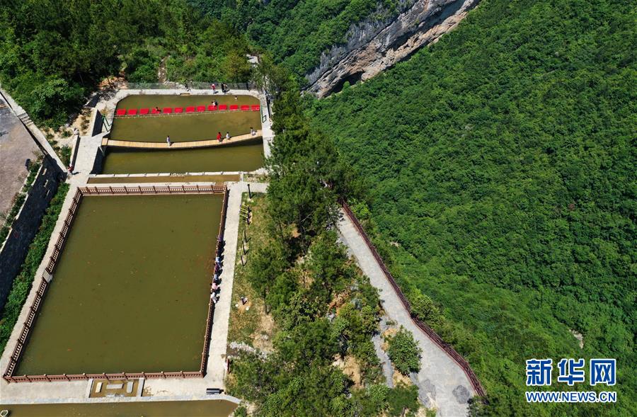 5月30日,游客在大窝社区游玩(无人机照片)。新华社记者王全超摄