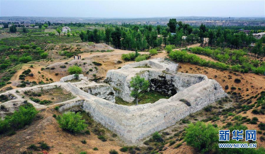 统万城西门及瓮城遗址(5月30日摄,无人机照片)。新华社记者刘潇摄