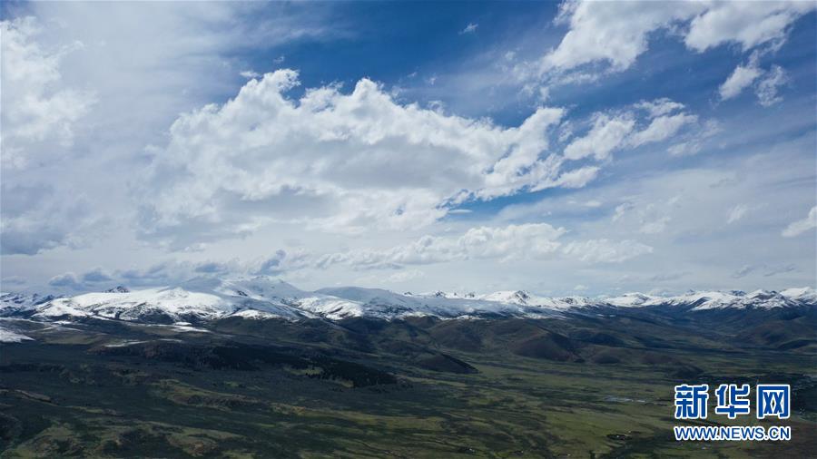 这是5月30日拍摄的四川省甘孜藏族自治州理塘县奔戈乡卡灰村一景(无人机照片)。四川省甘孜藏族自治州理塘县地处青藏高原东部,县城海拔约4000米,有“天空之城”的美誉。时值初夏,理塘的天空碧蓝如洗,巍峨的雪山环绕四周,牦牛星星点点散落于旷野之上,构成一幅高原特有的壮美图景。新华社记者李梦馨摄
