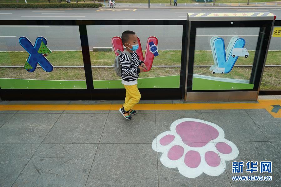 5月31日,一名小乘客在南京市建邺区河西新城有轨电车友谊街站候车。新华社记者季春鹏摄