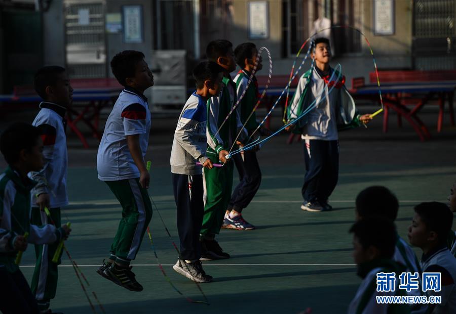 跳绳运动已经深深融入七星小学的日常,放学后,孩子们都愿意在学校跳跳绳(2019年11月18日摄)。新华社记者刘大伟摄
