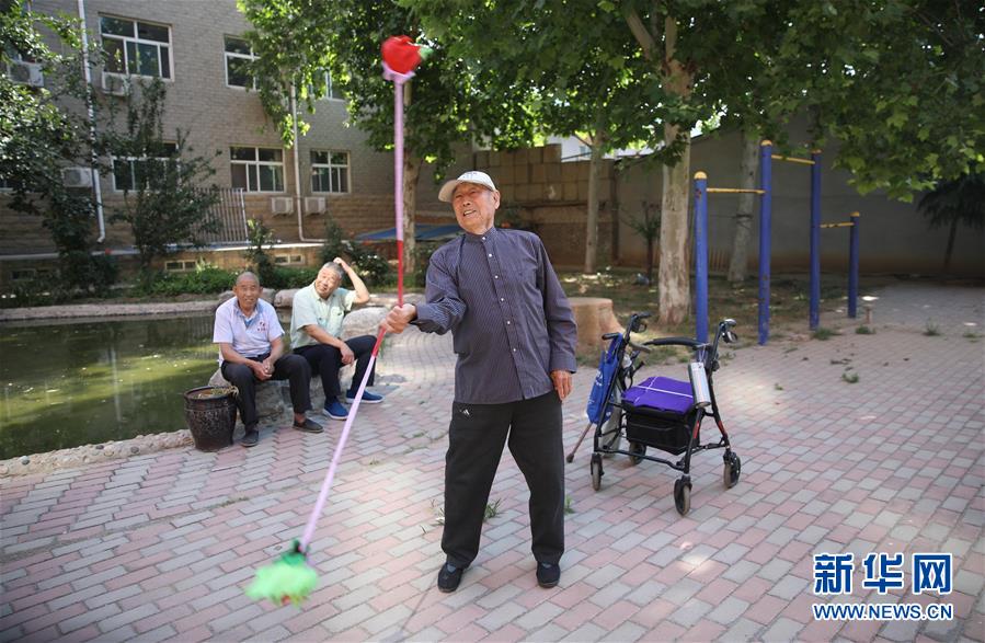 6月1日,在正定县塔元庄村劲松老年公寓,老人在锻炼身体。新华社记者朱旭东摄。
