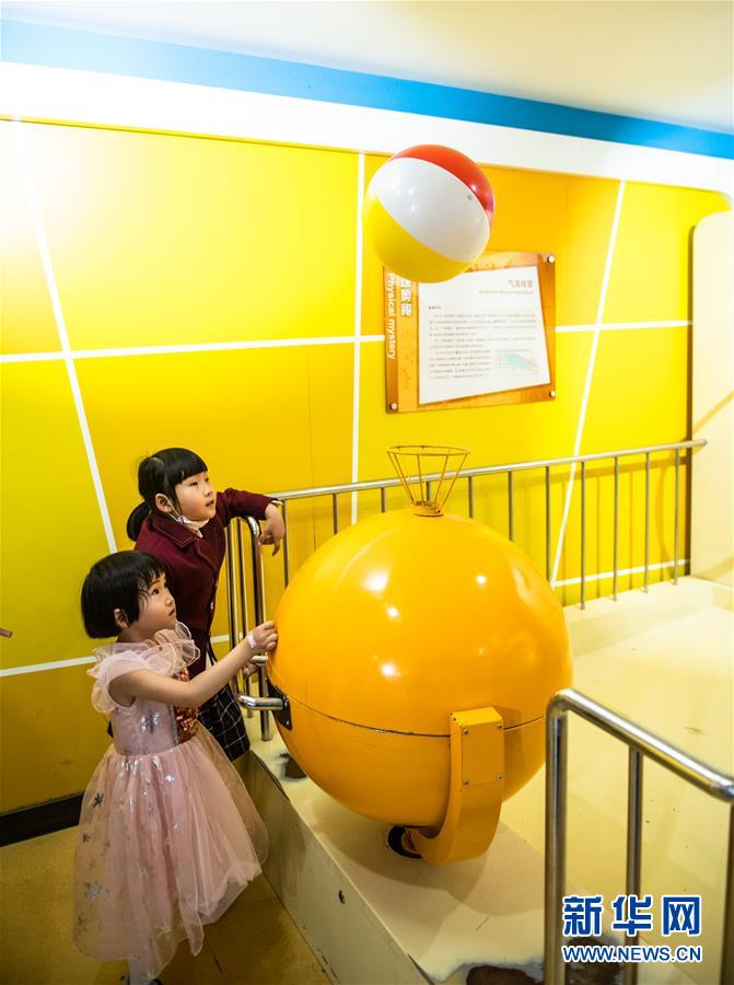 6月1日,小朋友在贵州科技馆内体验气流投篮。新华社记者陶亮摄。