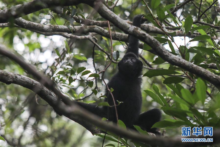 这是在海南霸王岭自然保护区内拍摄的海南长臂猿(2019年10月25日摄)。新华社记者蒲晓旭摄