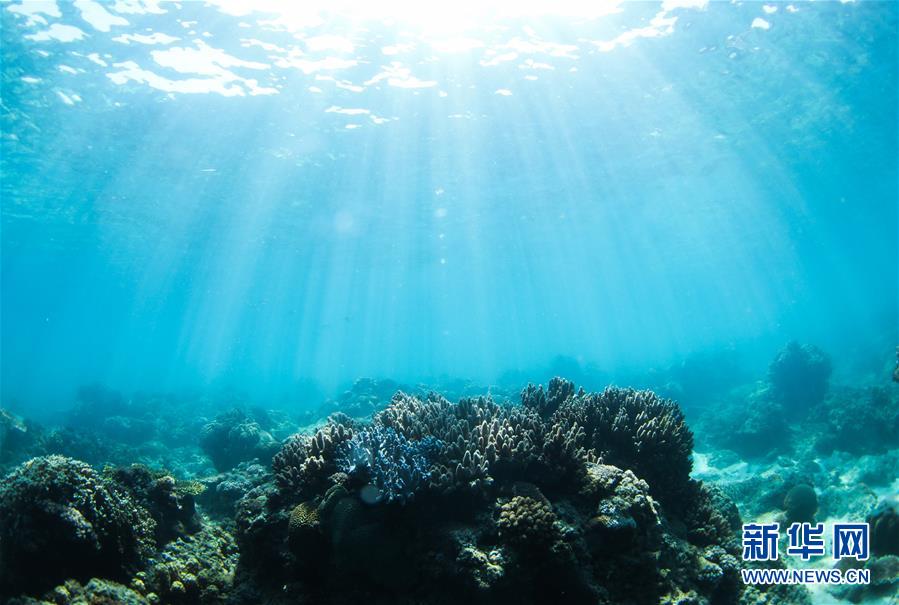 这是海南三亚蜈支洲岛旅游区海洋牧场中的珊瑚(4月29日摄)。新华社记者杨冠宇摄