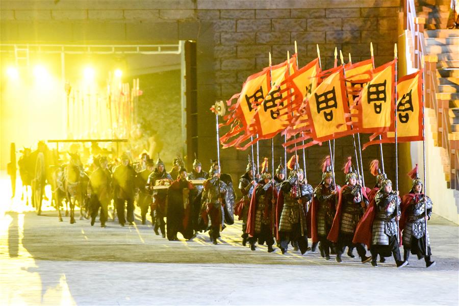 5月28日,演员在大型实景神话音乐剧《昆仑之约》中表演。5月28日,新疆文化旅游新名片——大型实景神话音乐剧《昆仑之约》在乌鲁木齐南山景区上演。该剧融自然山水之美、艺术文化之光、现代科技之新于一体,为市民献上一场视听盛宴。新华社记者丁磊摄。