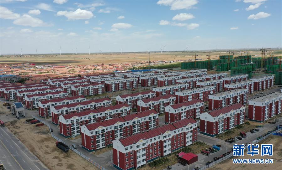 6月2日拍摄的尚义县大青沟镇的易地扶贫搬迁集中安置小区(无人机照片)。新华社记者杨世尧摄。