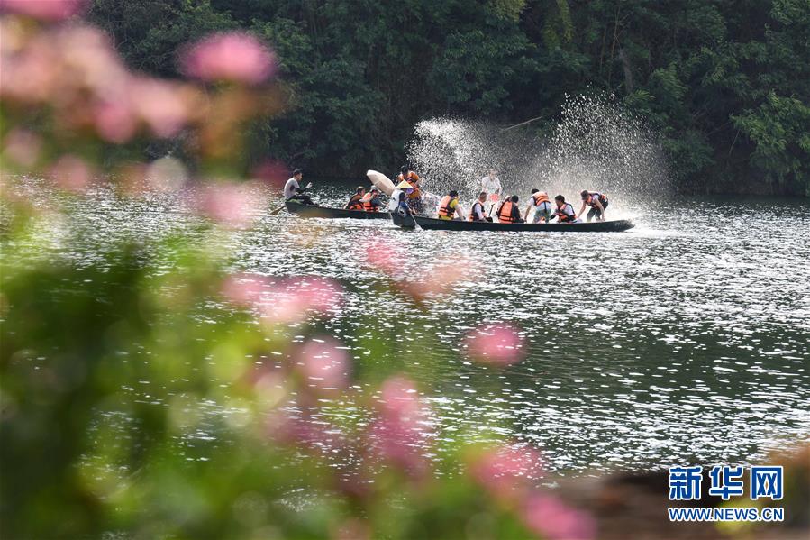 6月2日,游客在云南丘北县普者黑仙人洞村的湖上乘船游玩。新华社记者杨宗友摄。