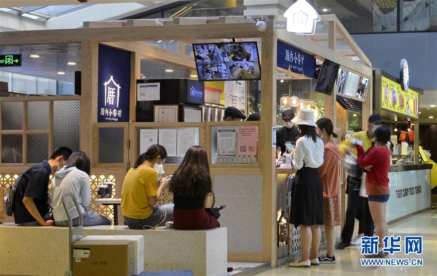 6月3日,市民及游客在西单大悦城商场内购买食品。近日,游人和市民纷纷来到北京市的王府井、西单、前门大街等著名商业街购物休闲,这些老商业街开始逐步恢复昔日的繁华。新华社记者李欣摄。