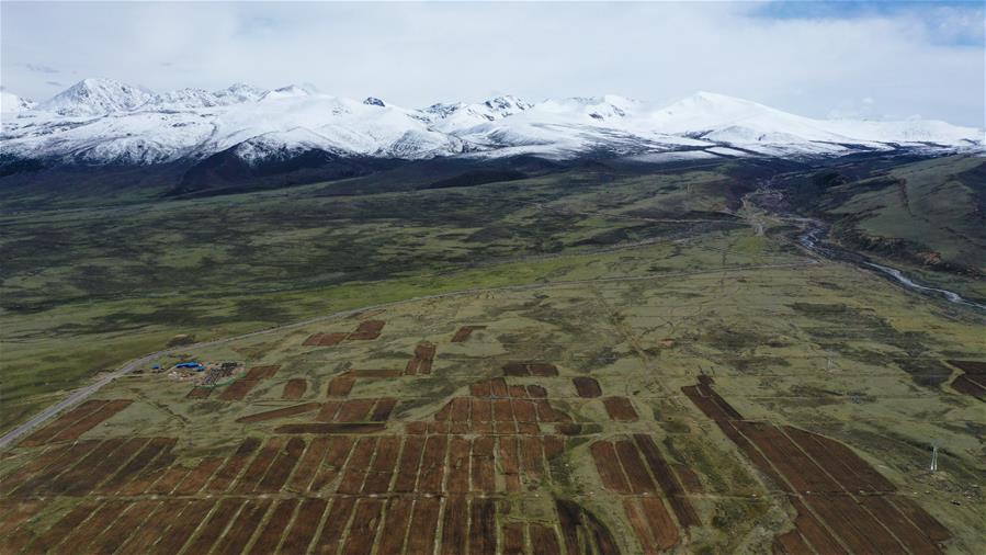 四川省甘孜藏族自治州理塘县地处青藏高原东部,县城海拔约4000米,有“天空之城”的美誉。时值初夏,理塘的天空碧蓝如洗,巍峨的雪山环绕四周,牦牛星星点点散落于旷野之上,构成一幅高原特有的壮美图景。新华社记者李梦馨摄。