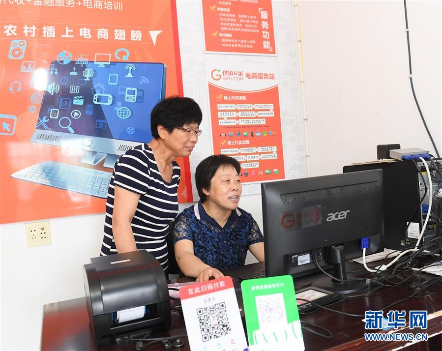 6月3日,在上虞区驿亭镇,镇政府工作人员(右)在舜利水晶杨梅专业合作社指导果农进行电商销售。近日,浙江绍兴上虞区二都杨梅开采。杨梅是上虞区传统特色农产品,目前上虞区二都杨梅种植面积1651公顷,年产量1.1万吨,2019年二都杨梅成功申报国家农产品地理标志认证。新华社记者翁忻旸摄。