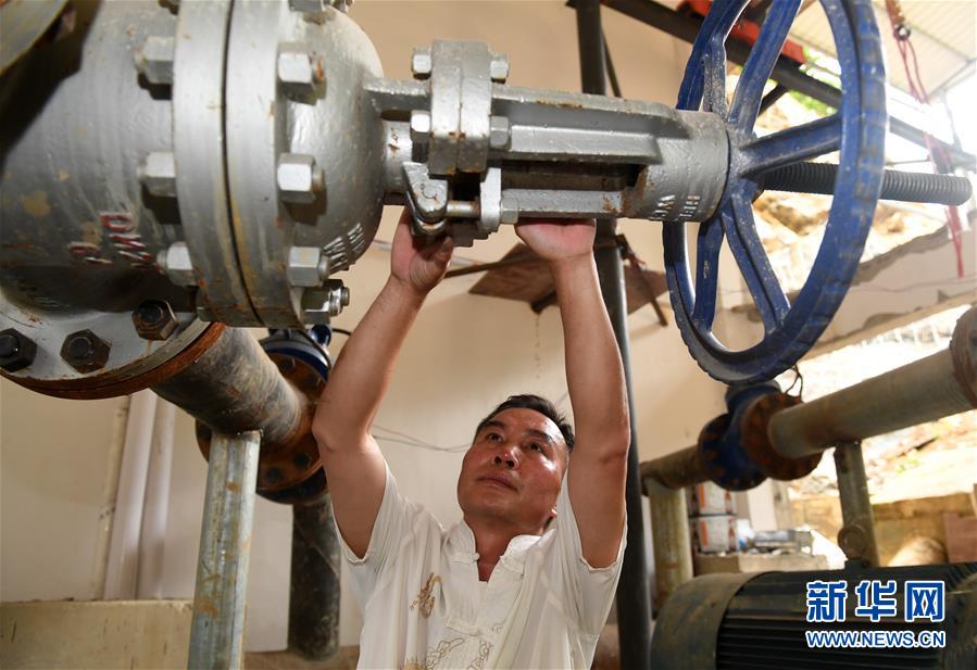 在广西环江毛南族自治县下南乡抽水站,工作人员在检查设备(5月22日摄)。新华社记者陆波岸摄。