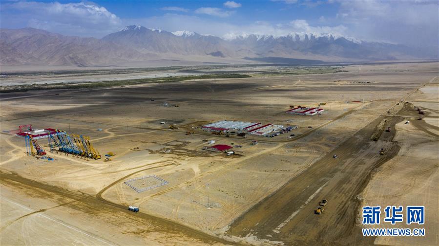 新疆塔什库尔干机场施工现场(6月3日摄,无人机照片)。新华社记者胡虎虎摄。