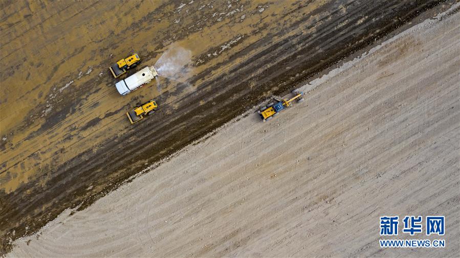 新疆塔什库尔干机场施工现场(6月3日摄,无人机照片)。新华社记者胡虎虎摄。