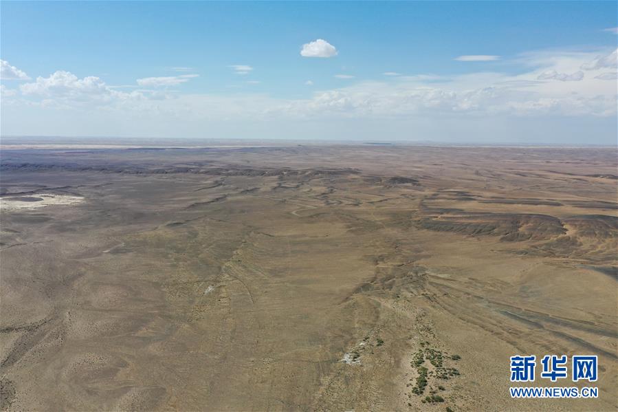 这是6月3日拍摄的新疆卡拉麦里山有蹄类野生动物自然保护区(无人机照片)。新华社记者丁磊摄。