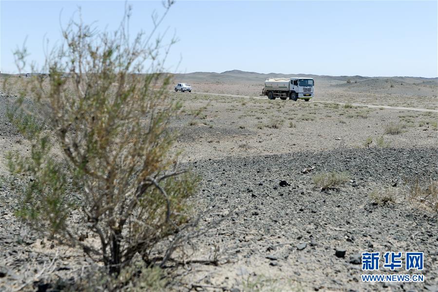 在新疆卡拉麦里山有蹄类野生动物自然保护区,管护员为野生动物拉运饮水(6月3日摄)。新华社记者丁磊摄。