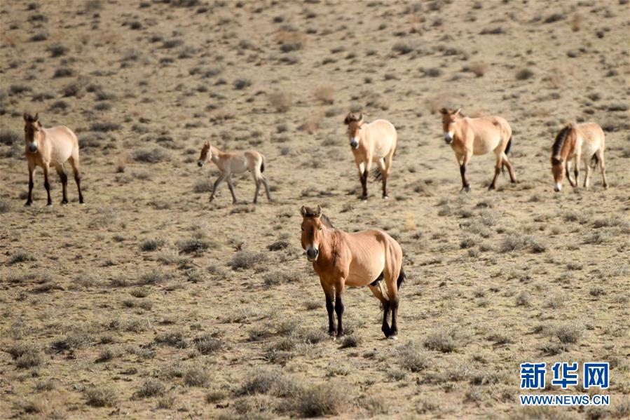 这是6月3日在新疆卡拉麦里山有蹄类野生动物自然保护区拍摄的普氏野马。新华社记者丁磊摄。