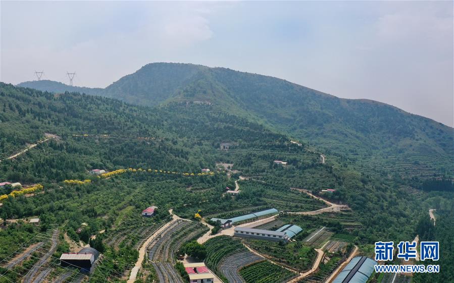 这是唐山市丰润区火石营镇赵庄子村百草坡农产品农民专业合作社的生态农业园(6月4日摄,无人机照片)。新华社记者杨世尧摄。