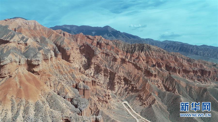 这是6月5日拍摄的位于青海省海南藏族自治州贵德县境内的丹霞地貌(无人机照片)。在青海省海南藏族自治州贵德县境内,色彩斑斓的丹霞地貌美如画卷。新华社记者赵玉和摄。