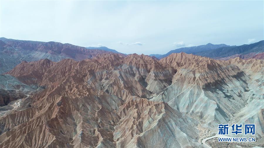这是6月5日拍摄的位于青海省海南藏族自治州贵德县境内的丹霞地貌(无人机照片)。在青海省海南藏族自治州贵德县境内,色彩斑斓的丹霞地貌美如画卷。新华社记者赵玉和摄。
