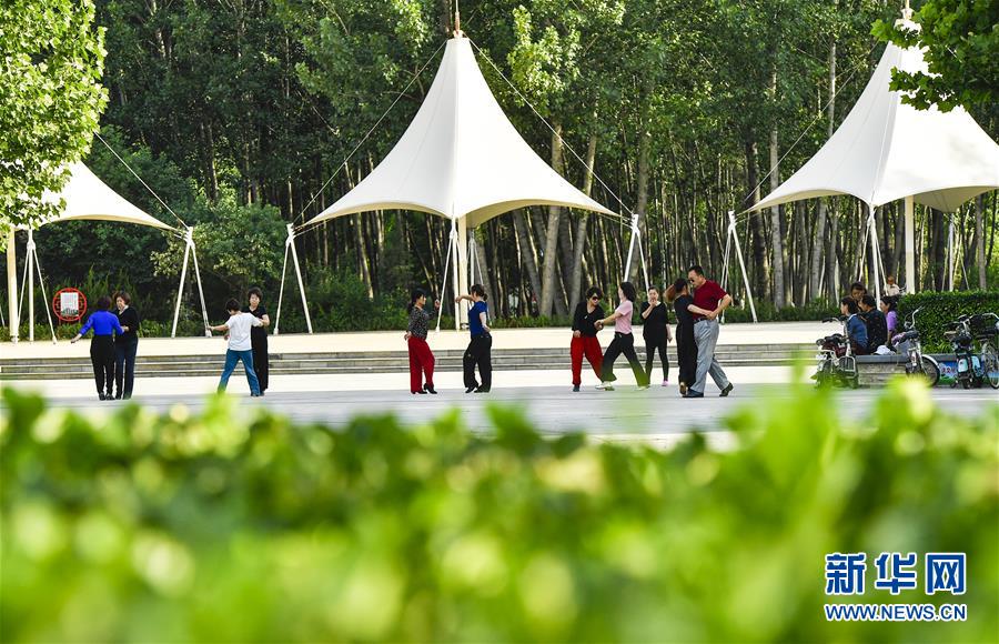 6月5日,市民在文安县水景公园内练习合唱。近年来,河北省文安县将植树造林与城市建设有机融合,探索“政府引导、企业运作、多方共赢”的市场化植树造林新模式,大规模推进国土绿化,打造人与自然和谐共生的优美生态环境,构筑京津雄绿色屏障。截至目前,该县森林覆盖率已经达到33%,城区绿地面积达到36.48%。新华社记者李晓果摄。