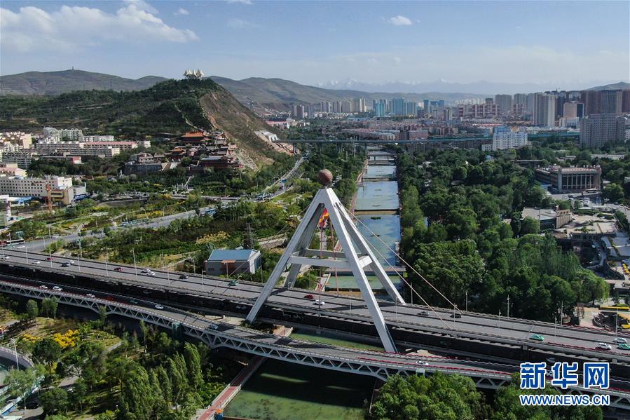 这是5月30日拍摄的青海省西宁市麒麟湾公园一角(无人机拍摄)。近年来,青海省西宁市大力开展植树造林,在半干旱气候、湿陷性黄土的现实情况下破解种树难题,目前全市建成区绿化覆盖率已达40.5%。新华社记者张龙摄。