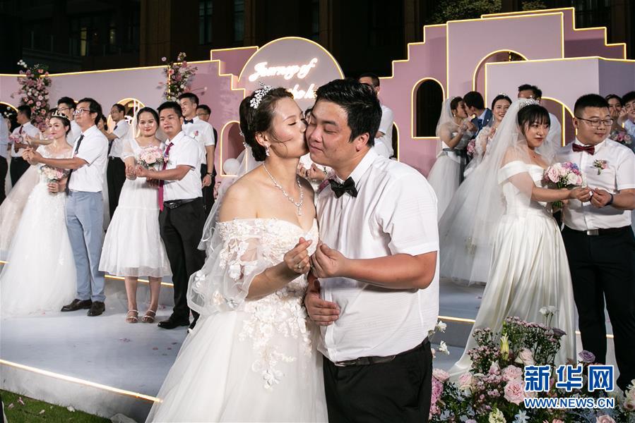 6月6日,新人在海南博鳌乐城国际医疗旅游先行区参加集体婚礼。 新华社记者 张丽芸 摄