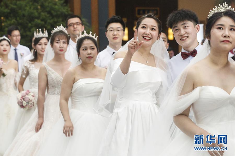 6月6日,在海南博鳌乐城国际医疗旅游先行区,新人准备参加集体婚礼。 新华社记者 张玉薇 摄