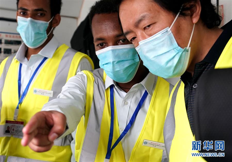 6月5日,实习指导教师在指导伊迪内卡邱(中)和特瑞萨(左)乘务实习。 新华社记者 李安 摄