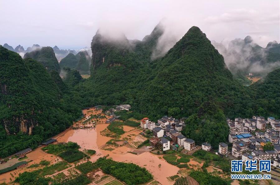 这是广西阳朔县部分出现严重积水的村庄(6月7日摄,无人机照片)。新华社记者陆波岸摄