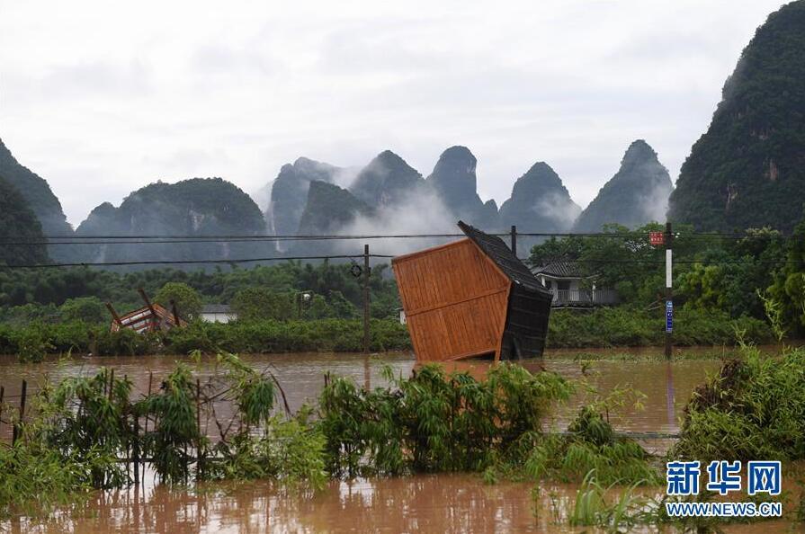 这是广西阳朔县被洪水冲毁的旅游设施(6月7日摄)。新华社记者陆波岸摄