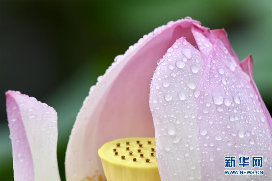 6月7日,一阵小雨过后,福州金山公园内盛开的荷花愈加娇艳欲滴。新华社记者姜克红摄
