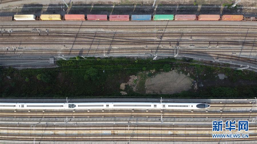 6月6日,在合肥北站物流基地,合肥首开至荷兰蒂尔堡的中欧班列进行发车前的准备工作。当日,搭载82个标准集装箱的中欧班列从中国铁路上海局集团有限公司合肥货运中心合肥北站物流基地驶出发往荷兰蒂尔堡,标志着合肥中欧班列通往荷兰蒂尔堡的线路正式开通。新华社记者张端摄