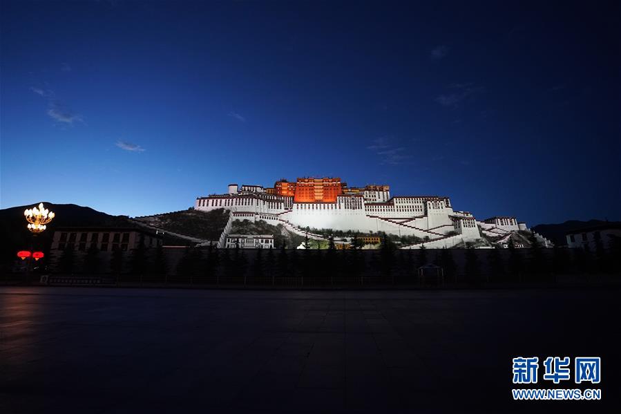 这是夜色中的布达拉宫(6月8日摄)。夜幕降临,西藏拉萨布达拉宫灯光璀璨,夜景迷人。新华社记者詹彦摄