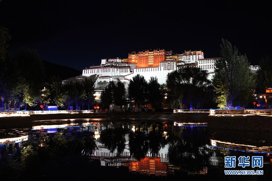 这是夜色中的布达拉宫(6月8日摄)。夜幕降临,西藏拉萨布达拉宫灯光璀璨,夜景迷人。新华社记者詹彦摄