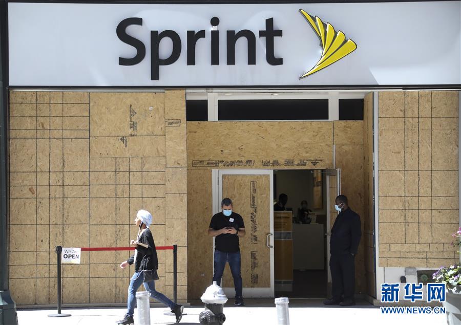 6月8日,店员在美国纽约一家电信运营商营业厅外等待顾客。在因新冠疫情进入“居家令”近三个月之后,美国纽约市于当地时间8日开始“解封”,进入经济重启的第一阶段。新华社记者王迎摄