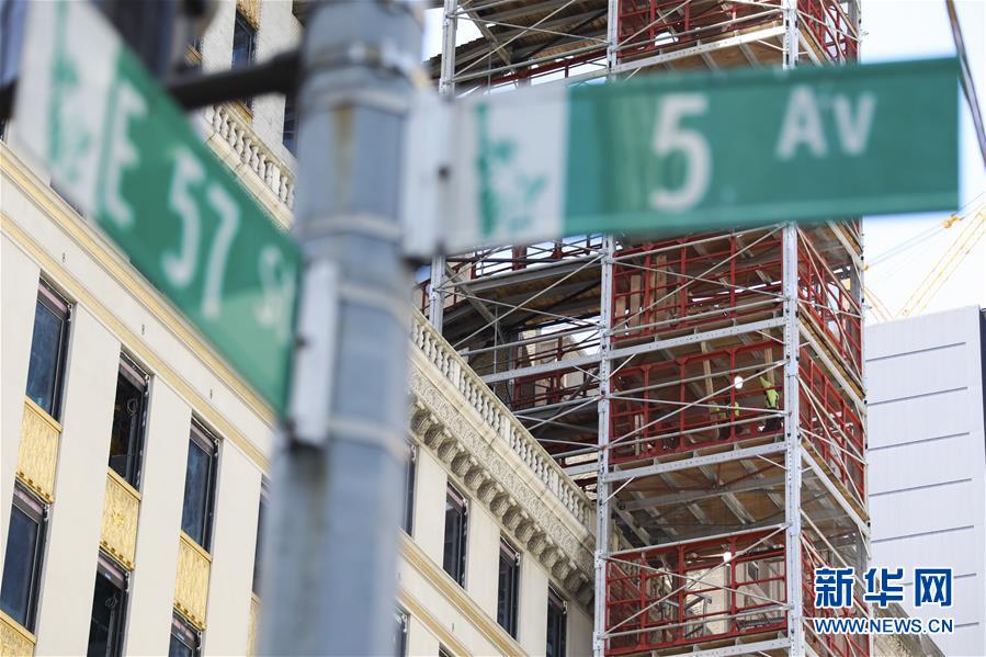 6月8日,工人在美国纽约的一处工地忙碌。在因新冠疫情进入“居家令”近三个月之后,美国纽约市于当地时间8日开始“解封”,进入经济重启的第一阶段。新华社记者王迎摄