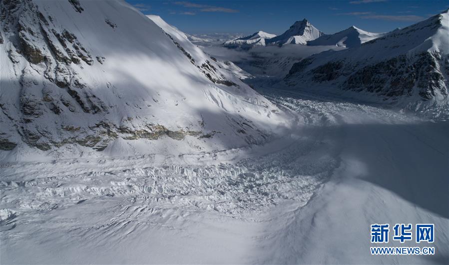 这是珠峰脚下的绒布冰川(无人机照片,5月22日摄)。从空中俯瞰珠穆朗玛峰北坡,生机勃勃的高原湿地、蜿蜒曲折的盘山公路、壮丽秀美的绒布冰川,还有安静的村庄和热闹的登山营地,共同构成一幅壮美画卷。新华社记者晋美多吉摄