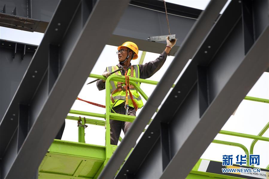 6月9日,工人在位于重庆市巴南区的渝湘高铁重庆段建设工地现场作业。