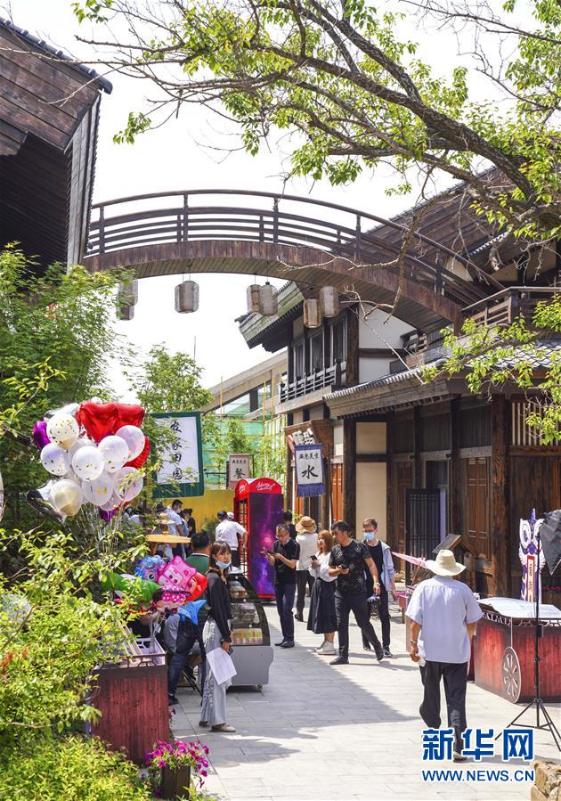 6月13日,市民在长春市世茂莲花山小镇宽厚里商街参观游览。当日是“文化和自然遗产日”。吉林长春首届莲花山消夏生活节在世茂莲花山小镇举行。活动将非遗展示与假日消暑休闲相结合,让游人在“古色古香”的油纸伞巷中品传统文化魅力,享夏日休闲惬意。新华社记者许畅摄。