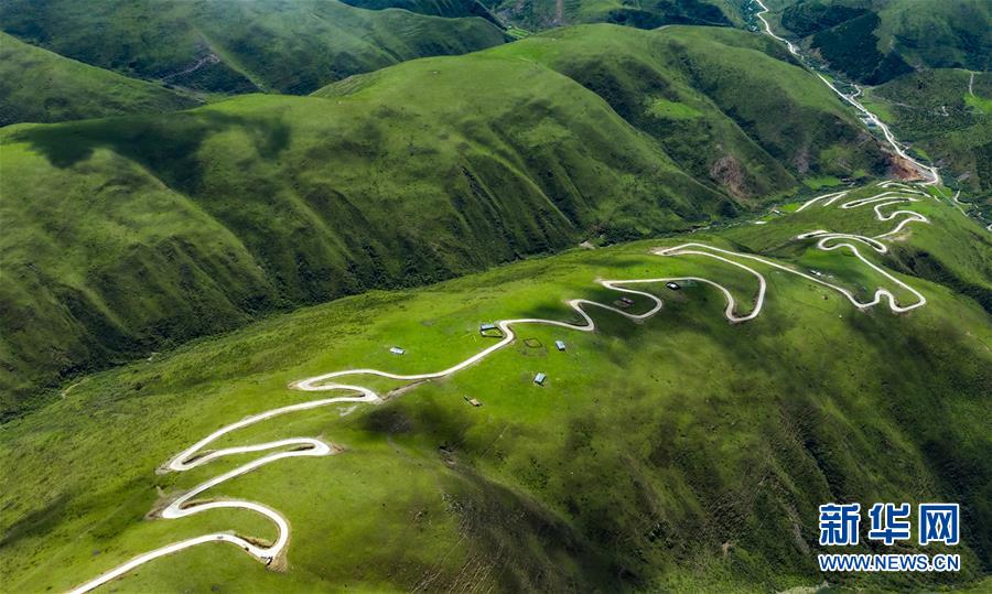这是6月13日无人机航拍的“上南天路”和路边的牧民居所。居住在路边的牧民,因为有了这条路,出行更加方便。新华社记者 沈伯韩 摄