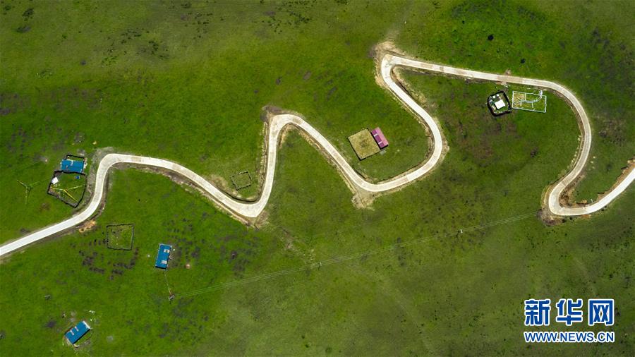这是6月13日无人机航拍的“上南天路”和路边的牧民居所。居住在路边的牧民,因为有了这条路,出行更加方便。新华社记者 沈伯韩 摄